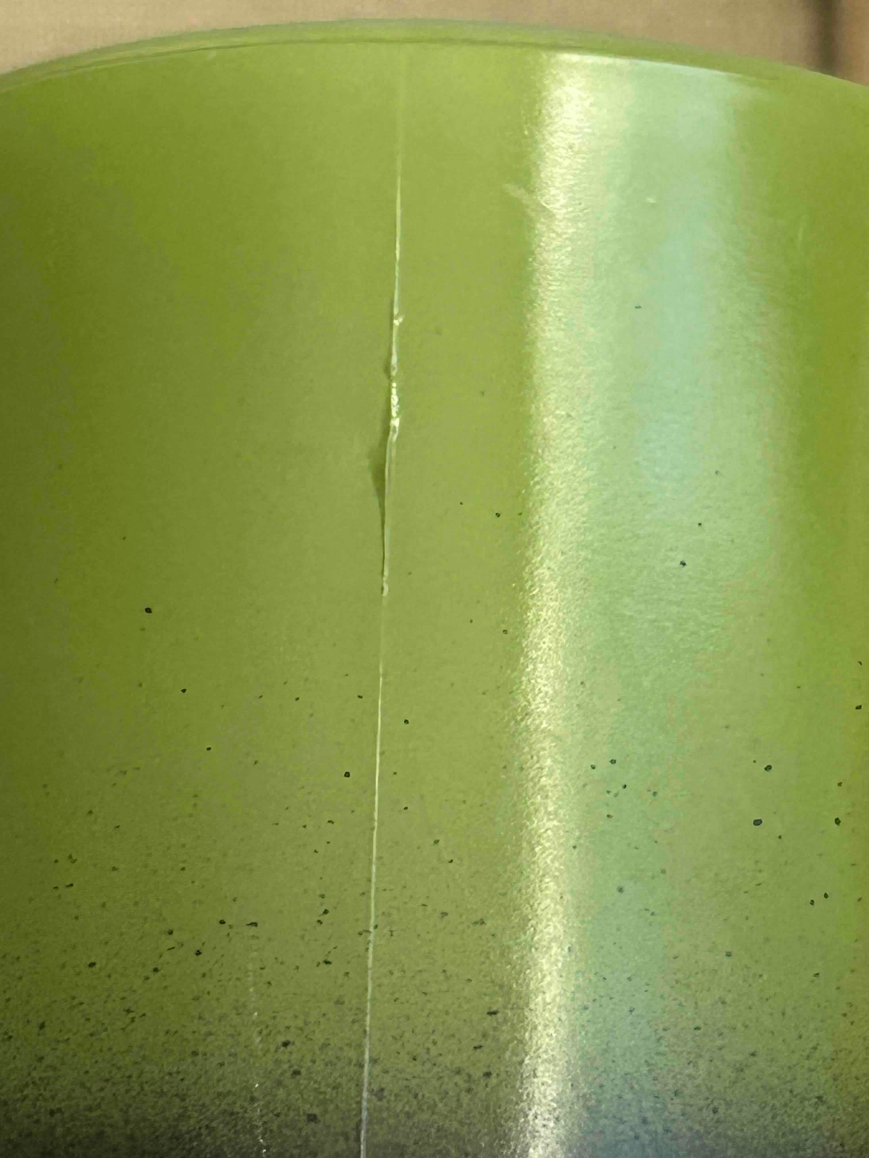 単色のグリーンのマグにスプレーでブラックのペイント