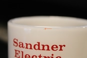 Fire King Advertising Mag(Sandner Electric Company)STACKING MUG RIBBD BOTTOM
