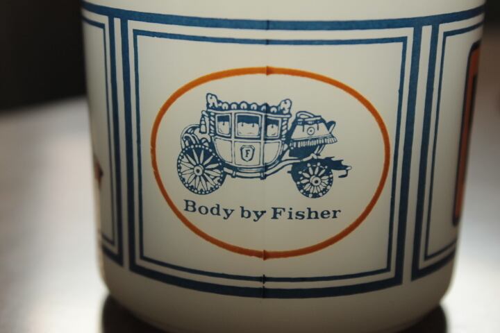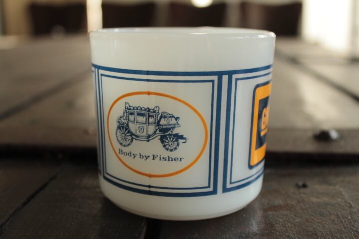 安定感のあるショートマグに、GMのロゴマークとGMの一部門であったフィッシャーボディ社がデザインされています