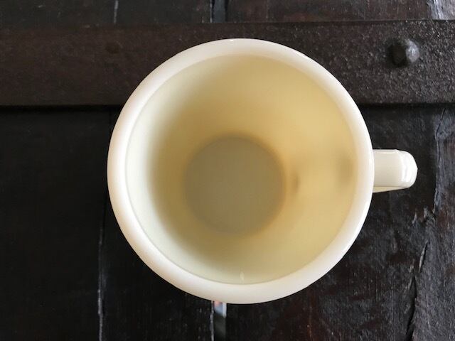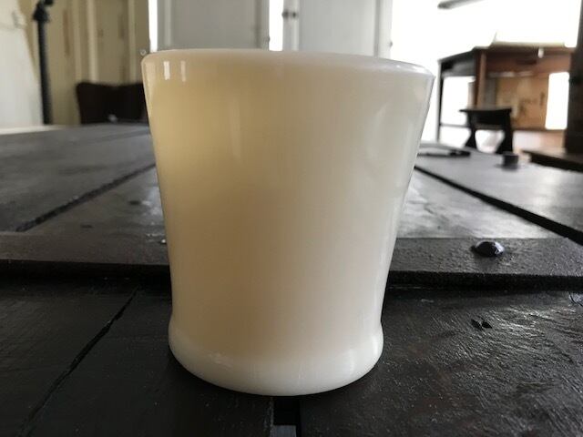 初期に製造された、やさしい乳白色のアイボリーカラーはまさにミルクガラスといえます。ものによって色合いがずいぶん異なりますが、アイボリー色は濃いめです